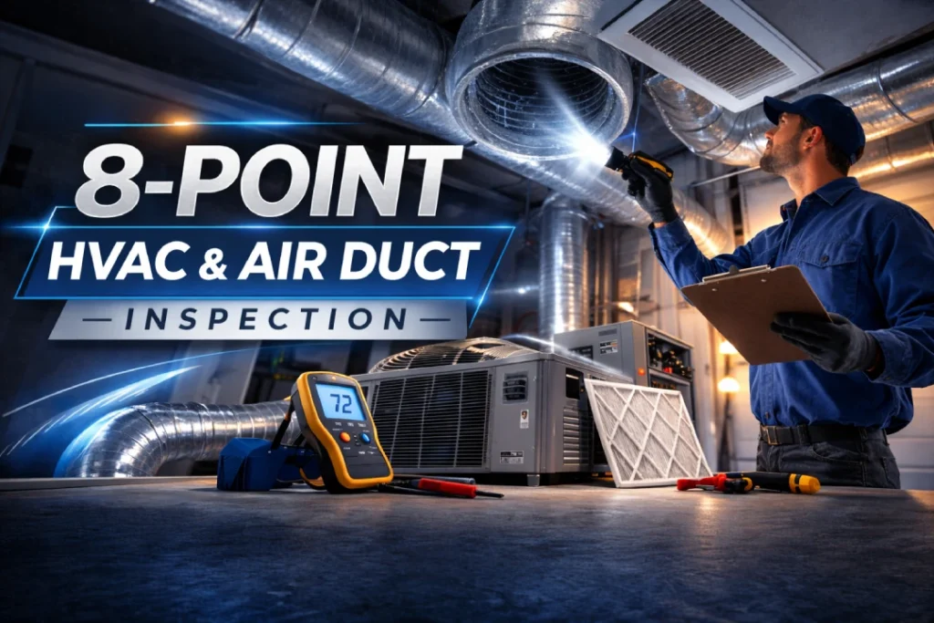 HVAC and Air duct inspection provides you valuable insights about the performance of your HVAC system. Professionals examine the system to find dust buildup, blockages, or airflow issues during the HVAC inspection.Identifying these issues early can improve system efficiency and indoor air quality.